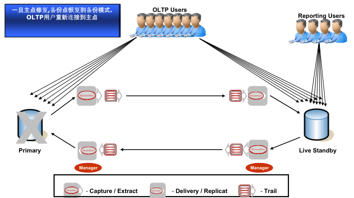 对于GoldenGate既支持数据单向复制,也支持数据库双向同步复制。