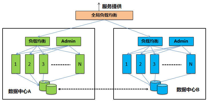 那么在启用双数据中心后可以看到,对于Admin节点建议仍然是在两个数据中心各自一套,即应用程序的更新和部署仍然在两个数据中心各自手工部署来完成。特别是在主备模式下,这种手工方式处理基本没有任何影响。
