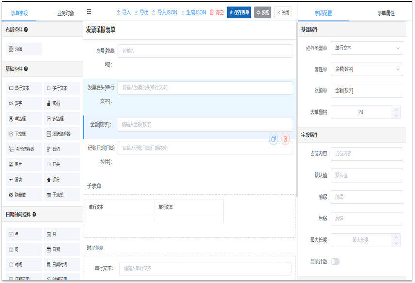 表单设计+流程引擎:表单挂接到流程节点,变成流程表单,可根据每个节点的业务情况再次配置表单权限、表单前后置事件,根据每个节点进行打印模块配置。