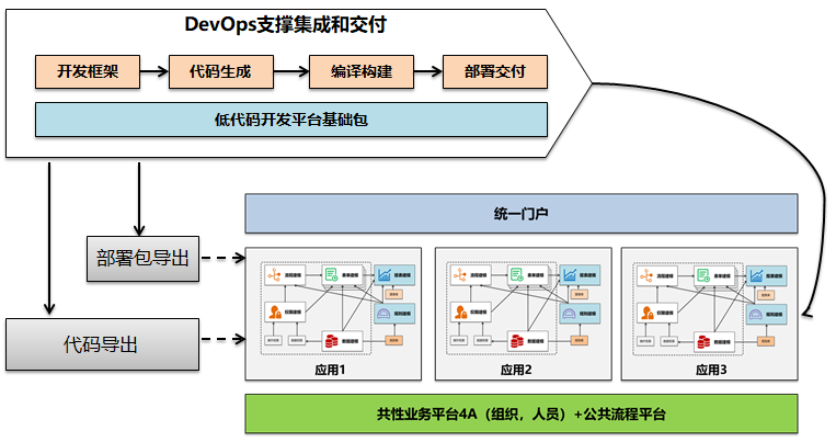那么基于低代码开发平台开发的应用实际应该是整个架构里面的一个小应用。