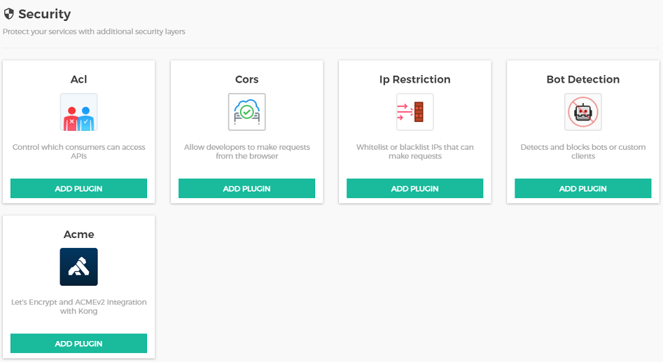 对于Kong本身提供了非常丰富的插件,对于这些插件,大部分都可以直接在konga管理平台上进行配置。同时也可以很方便的进行自定义插件的扩展。
