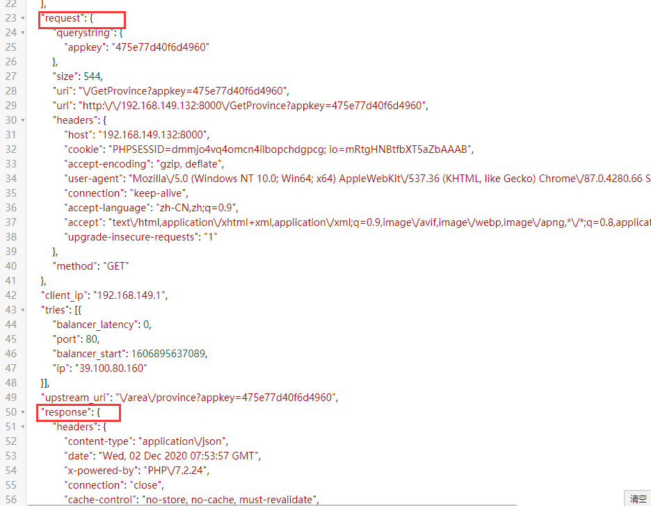 对结果进行格式化处理,可以详细的看到Service ,Request请求和路由信息。但是暂时没有看到Response返回的消息报文日志记录。