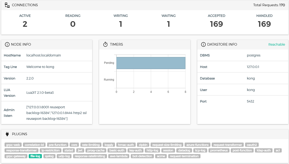 在安装Konga前请先确认Kong网关已经正常安装和可以正常运行。