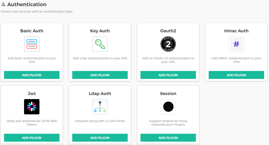 当前Kong网关提供basic-auth,key-auth、ldap-auth,hmac-auth多种认证插件。