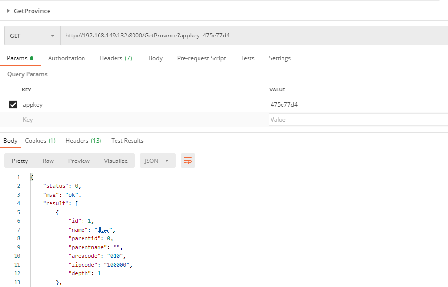 已经可以看到有正常的省份信息返回。当然也可以用PostMan进一步进行测试和验证。得到的结果和直接浏览器访问结果一致。