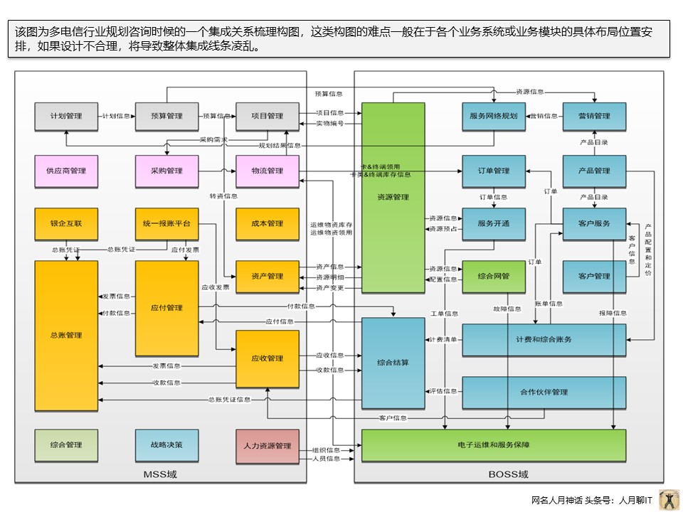 对于集成架构图或叫集成关系图,往往是最难的构图,比如有10个或20个系统,要将其体现在一张集成架构视图中,各个系统之间本身又有很多的接口通过连线体现。这个时候画起来就不容易,这里面的关键点就是核心系统居住,同时要考虑系统间的连线尽量不要交叉,连线不要跨系统穿插等。这个过程往往需要经过多次修正调整,具体标准的公式化方法实际难以给出。