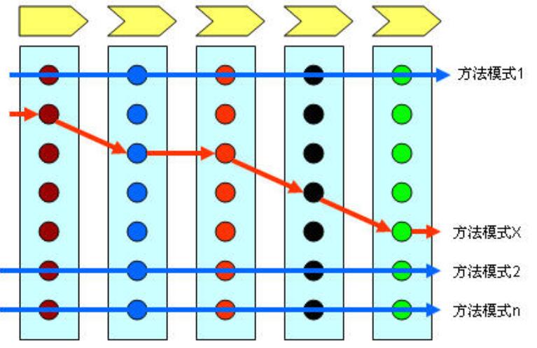 积累经验的过程就是PDCA不断循环的过程,是自我不断总结和改进的过程。是对已有知识和技能不断提炼方法论和模式的过程。图中的方法模式1这条线就是应用了多种知识的一个经验,可能三个月就积累的,后续时间如果不更多的总结和优化,找寻其它的方法模式,那三年工作后可能仍然是三个月的经验。