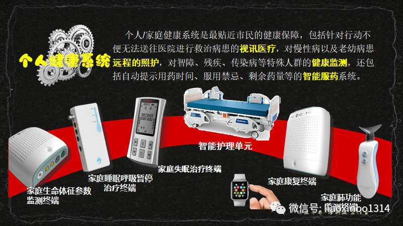 一是智慧医疗医院系统。智慧医疗将来会应用在医院系统非常多的地方。比如药品、耗品管理系统,解决病房人手不足的医疗安全监控系统等等。