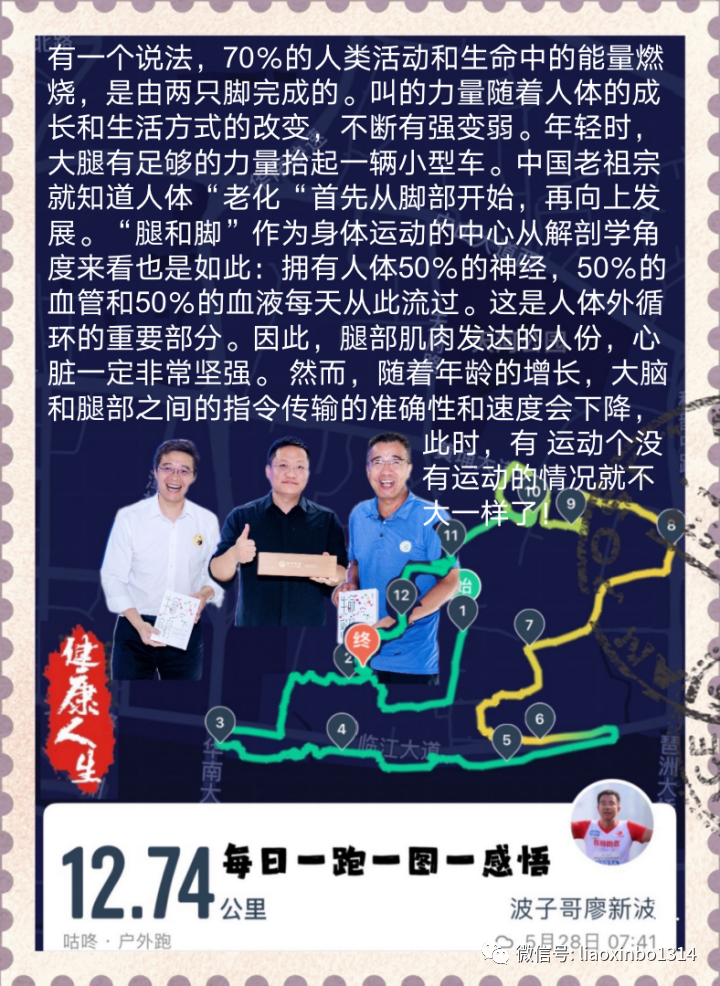 有一个说法,70%的人类活动和生命中的能量燃烧,是由两只脚完成的。脚的力量随着人体的成长和生活方式的改变,不断由强变弱。年轻时,大腿有足够的力量抬起一辆小型车。中国老祖宗就知道人体“老化“首先从脚部开始,再向上发展。“腿和脚”作为身体运动的中心从解剖学角度来看也是如此:拥有人体50%的神经,50%的血管和50%的血液每天从此流过。这是人体外循环的重要部分。因此,腿部肌肉发达的人 ,心脏一定非常坚强。然而,随着年龄的增长,大脑和腿部之间的指令传输的准确性和速度会下降,此时,有运动和没有运动的情况就不大一样了!——波子哥谈运动与双腿20220528 https://mmbiz.qpic.cn/mmbiz_png/HG3me7pqWNeFk0kQR2ZXx6VIhwFNV4DpZ3iasrn8zbv9EE2ibZ6ibMnQszXT2IU61VOqqSasNfouzvsChhdlEHBew/640?wx_fmt=png经常性的中强度的腿部运动是非常重要的。你要知道,一个人整个身体的重量都依靠双腿都支撑,这个“支柱”都承载力完全是有健康有力的腿部肌肉。这就是人的生物特性,如果吝惜双腿,只有使它逐渐退化。有研究表明:一个人的体重中有50%位于骨头中,而骨头的50%则位于两条腿中。这就使我们想起起重机,没有坚强的底座可以吊起人体最大和最强的关节和骨头,也在腿上。所谓的人体“铁三角”就是强壮的骨骼,强壮的肌肉和灵活的关节,承载着人体上最重要的负荷。——波子哥谈运动与支柱20220527