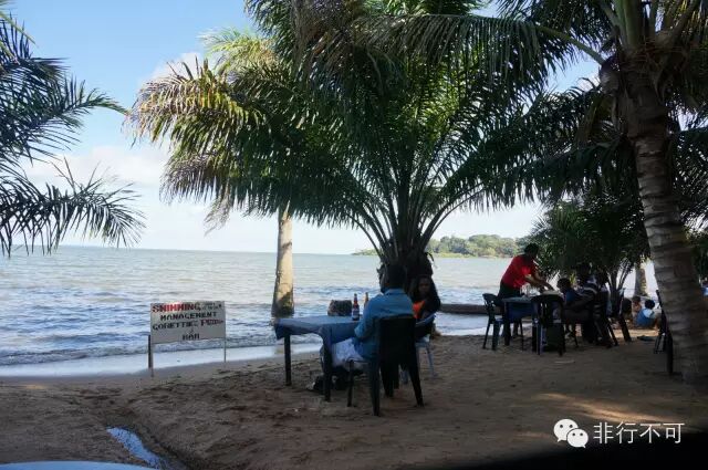 朋友下课后,我和她坐bodaboda(摩的)去湖边露天餐厅聊天。湖很大,有很多沙滩,这家餐厅就建在某个沙滩上,我们喝果汁,吃烤鱼,看一群小黑娃在湖里游泳嬉闹。我们吃的那条鱼据说是湖里产的,很久以前维多利亚湖盛产鲈鱼,英国人都跑来这里捞鱼运到欧洲,渐渐的鱼全被打捞完了,现在湖里的鱼很少。