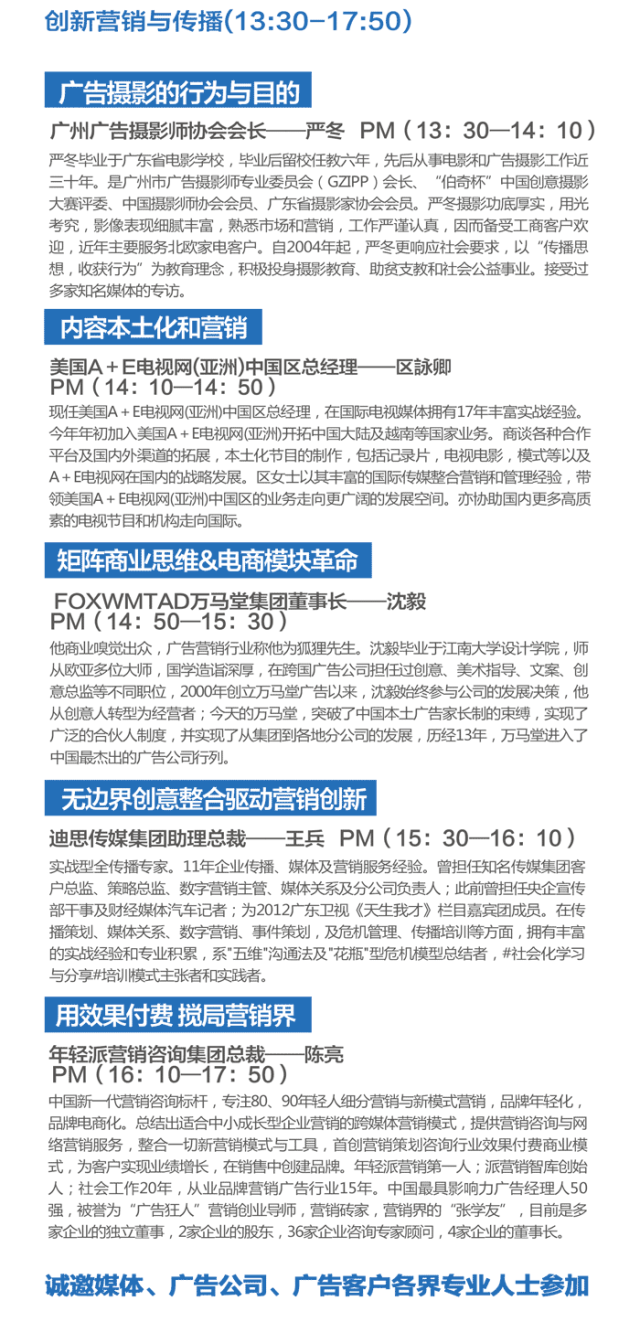 而围绕广告产业创新营销与传播,广告摄影的行为与目的,如何做到内容本土化和营销,矩阵商业思维与电商模块革命,无边界创意整合驱动营销创新,用效果付费搅局营销界,专家们现场一一作出解析并进行探讨,为山东广告业发展注入新活力,并带来国际化思维。