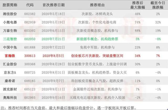 截至2020年9月18日重点股票池,将不定期调整: