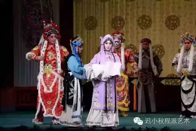 迟小秋演出的《文姬归汉》基本是按程先生路子走的,只是精简了一些场次,使得全剧更加紧凑精炼。在结尾处,程先生的结尾四句【反二黄散板】:这叫做惜惺惺相怜同命,她那在九泉下应解伤心。我只得含悲泪兼程前进,还望她向天南月夜归魂。这四句极好听,也极难唱。