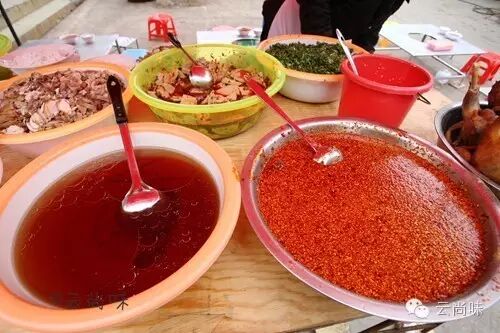 在云南老百姓家吃饭,一桌子菜肴,少则一碗,多则三四碗蘸水,反正一定有。