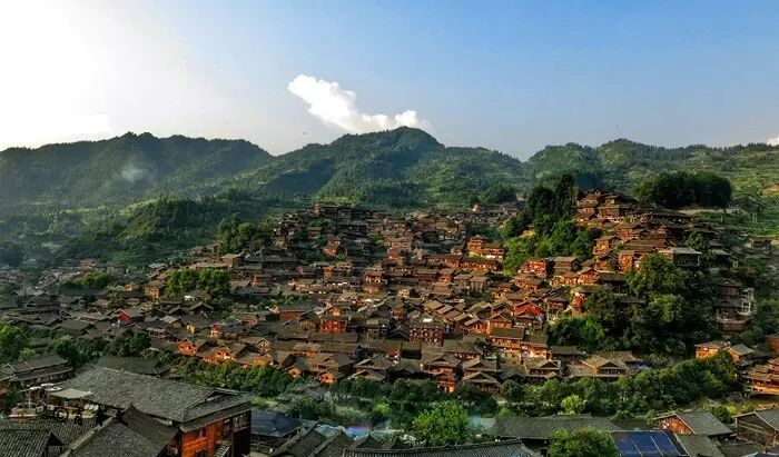 1、西江千户苗寨,位于贵州省黔东南苗族侗族自治州雷山县东北部的雷公山麓,距离县城36km,距离黔东南州州府凯里35km,距离省会贵阳市约260km。由十余个依山而建的自然村寨相连成片,是目前中国乃至全世界最大的苗族聚居村寨。