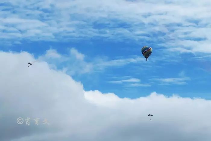 伴随着阵阵惊叹声和欢呼声,看着他们一点点的变小,小得如同一片叶子飘荡在谷底。“鸟人”们成功的飞跃大山包,开启降落伞逐渐滑向地面。