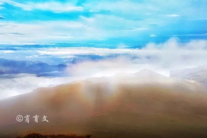 在山上,第一次亲眼看到佛光。其实佛光的形成是需要一些因素的,比如说大雾,这就好比投影仪的幕布,这时候太阳必须在你的身后,阳光必须刚好以25度到30度的角度直射,这时候就好比投影仪,从而产生“佛光”~