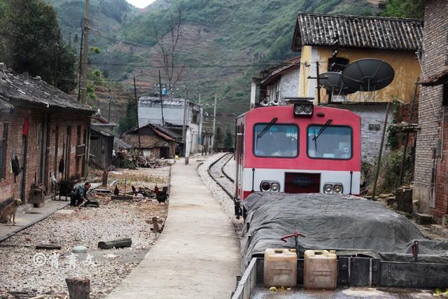 由于不少路段建于深谷悬崖之上,加之铁路轨距为1米,俗称“米轨”,许多路段曲线半径极小,车厢和机车也是特制的“小火车”。
