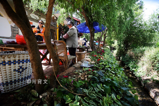 束河,花草树木葳蕤,蓝天白云高远,人情冷暖不必知。