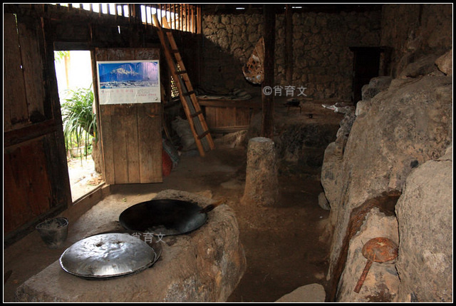 民居群落全是就岩随势,有的利用天生岩石稍加修凿而成家庭用具,如有的在厨房中凿巨石为石灶,有的把庭院中的巨石凿个大圆洞,当水缸使用;还有的将房中巨石修凿成石床使用,有的床沿已磨得滑溜精光,不知道睡了多少代人。