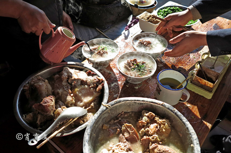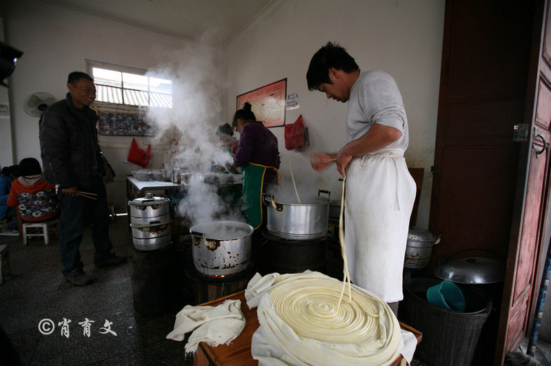 在巍山古城,名气排在粑肉饵丝之后的就应该数长寿拉面了。巍山的一根头长寿拉面,独具特色,既好吃又好看,而且具有深刻的含意。吃面时,一边生面不停地被拉下锅,一边捞起熟面,连根不断。地道的拉面手艺,再加上本地新鲜的蔬菜腊肉火腿炒制的帽子,巍山拉面,既保留了北方拉面的劲道顺滑,又有了自己独特的鲜香。
