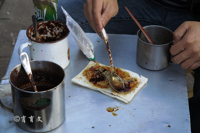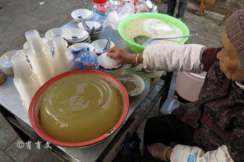 对这个小城的喜爱,从一碗凉粉开始。这一切全是因为摊主大婶为了让我这个外乡人吃到一碗地道的当地小吃。依次是卷粉、凉面、豌豆粉、米线,最后加了六七种调料,包括黄芥末,配成一大碗凉粉,吃光之后,再舀一勺子酸汤喝喝,真是爽快极了。