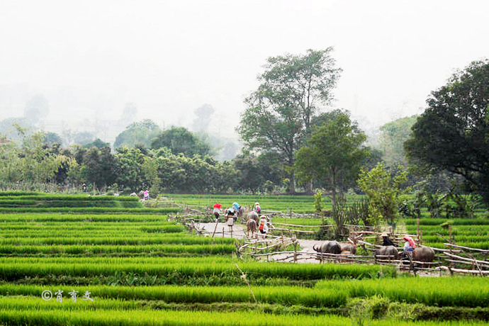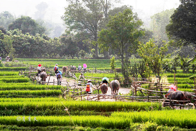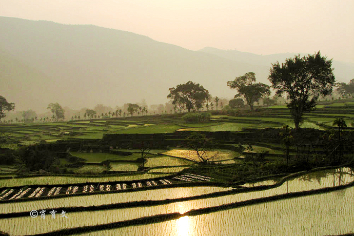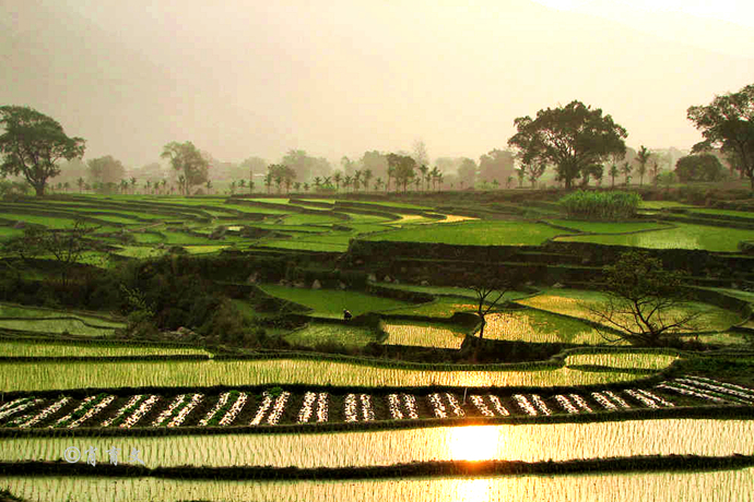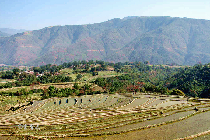 在去戛洒的路上,收到来自昆明的天气预报,明天气温5摄氏度,而前往戛洒的我们,正享受着初春暖阳。公路两边稻谷早已收割完,阳光下的水田犹如一面面镜子。一眼望去,峰峰岭岭尽都浓浓淡淡地绿着,处处漾波漫流的绿意,清新得令人陶然如醉,神魂飞扬。