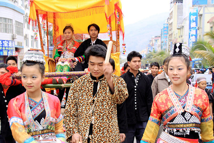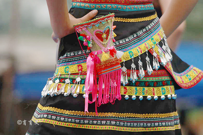 要是小伙子对某位姑娘倾心,便投去含情脉脉的目光,如果姑娘钟情,就报以甜甜一笑。刹那间,眼明手快的小伙子立即从姑娘摆着的绣物中拿了花手帕或香荷包离开“花街”。姑娘随即也收起绣物,不紧不慢跟去,走向好说话的地方。