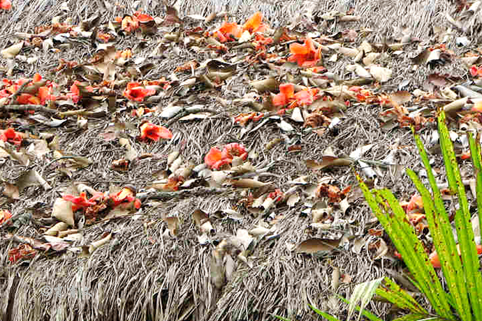村庄在山腰上,一段高约1-2米不等的寨墙将寨子团团围住。进入村寨,大规模保存完好的土掌房是第一道亮丽风景。土掌房是花腰傣的传统民居,为氐羌族群先民所造,而由氐羌族群后裔彝族传到哀牢山。