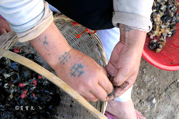 在这里,女子身上还有一个最明显的特征就是刺青。女子们一般都会在手臂上刺上自己或者爱人的名字以及图案,刺青一般在五六岁至十五六岁之间进行,刺青的最佳日子选定为每年的端午节。