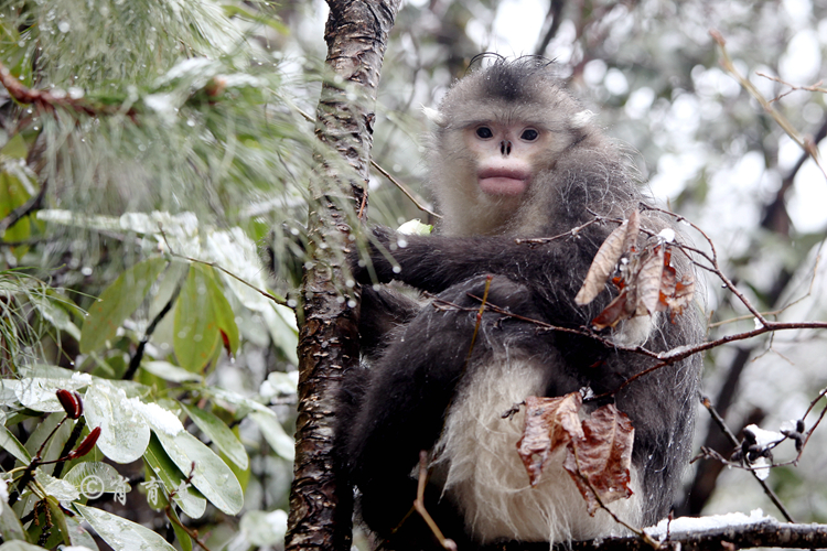 滇金丝猴:它们具有一张最像人的脸,面庞白里透红,再配上它那令当代妇女追求的丰盈肥厚、性感迷人的美丽红唇,堪称世间最美的动物之一。它之所以珍稀,是因为,它是我国特有的灵长类动物,其分布区域非常狭窄,仅限于金沙江、澜沧江之间的云岭山脉海拔为2800——4300米的雪线附近。