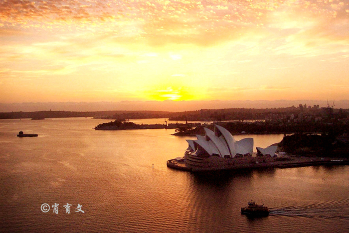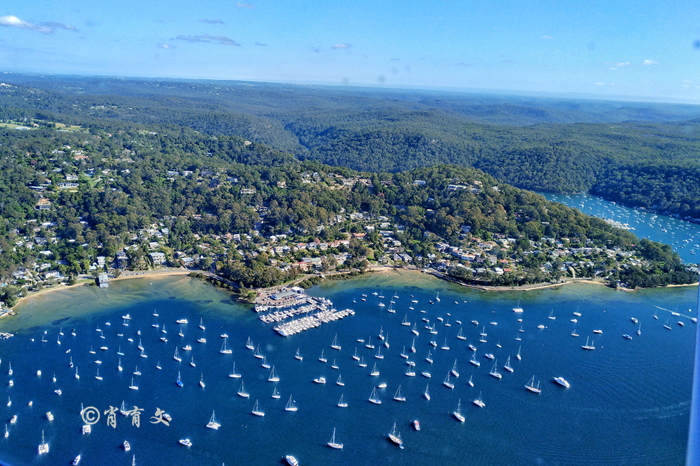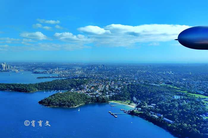 从鲸滩乘红猪的水上飞机到悉尼玫瑰湾,歌剧院、悉尼大桥,碧海蓝天星帆点点尽收眼底。