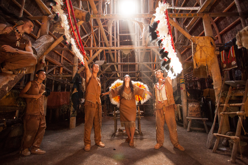 在魁北克城西北方向25分钟车程的温达科----休伦族部落所在地。温达科(Wendake)是休伦族对故土的称呼,魁北克的温达科是现今留存最大的休伦族部落之一。每逢POW WOW节期间,原住民们都会身着盛装,进行歌舞表演,再现民族习俗与传统。节日期间还能买到不少原住民手工制品。