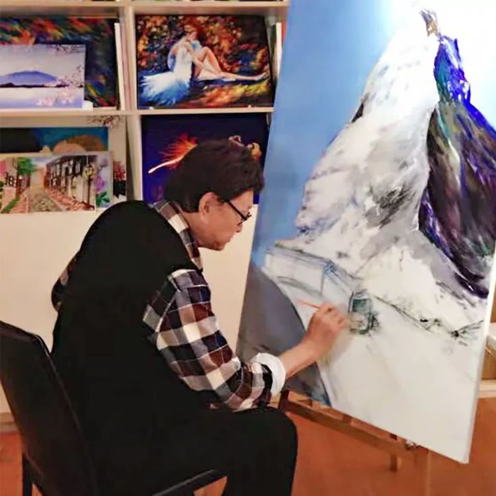 然后他又开始吵着去瑞士,我们又告诉他,不然你画画啊,可以开画展,于是他花三个月学油画,画了40、50幅作品,开始开画展,大概安静了半年,接着又开始说要去瑞士。