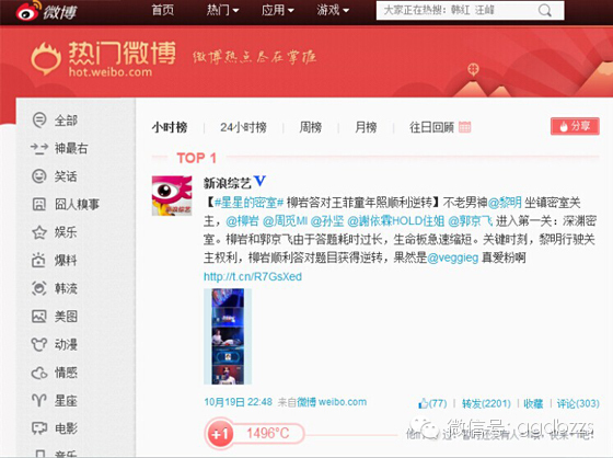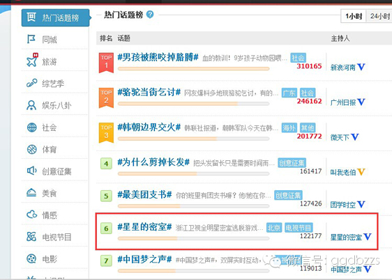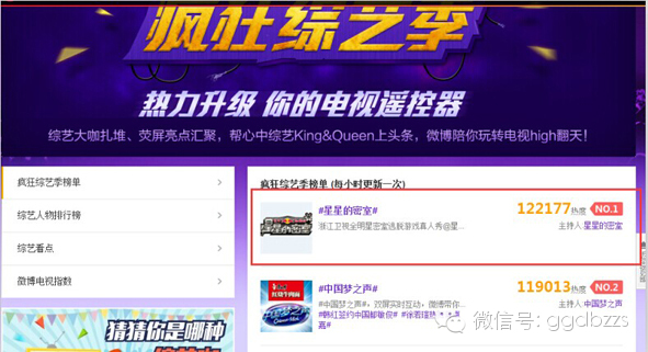 《星星的密室》成为微博热议对象,强大的明星阵容不可忽视,前来参与节目的孙坚、谢依霖、周觅、柳岩、郭京飞、郭晓冬、阿兰、张玮、毛晓彤、张若昀、南笙、蒋梦婕、叶祖新、温雅、池长庚、罗希等纷纷在微博上力挺节目,第二期节目的关主刘恺威以及后续闯关选手乔振宇、张艺兴的粉丝团也积极助阵,尚未在首发阵容出现的EXO中国团员张艺兴已经凭借超高的网络人气收获#挑战星星的智商#互动话题热门微博第10。
