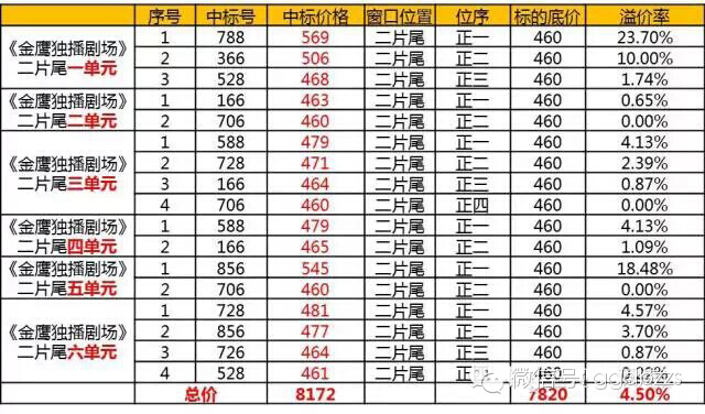 金鹰独播剧场一片尾标的物总数24个,总中标额1.7058亿元,较标底涨幅11%。