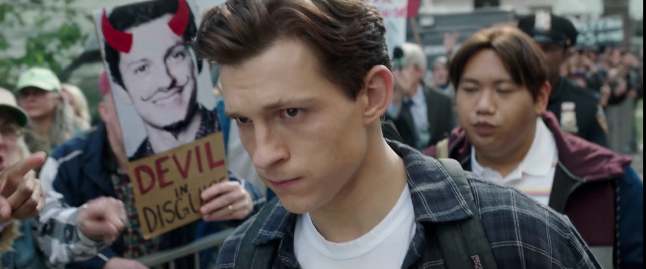 而这一次,身份曝光肯定会让彼得·帕克面对前所未有的危机,也让蜘蛛侠IP从一直以来的正邪对抗中破局,战胜反派,他首先要战胜自己,重塑公众濒临坍塌的信任比什么都难,游行的人群中,甚至有人给他贴上了“DEVIL(魔鬼)”的标签,就等电影上映,看故事怎么往下讲了。