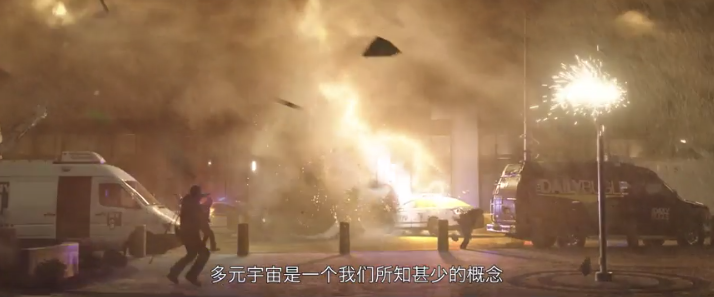 电光火石,被燃爆的汽车、周边路人的手足无措,预示着多元宇宙带来更大的危机和灾难。