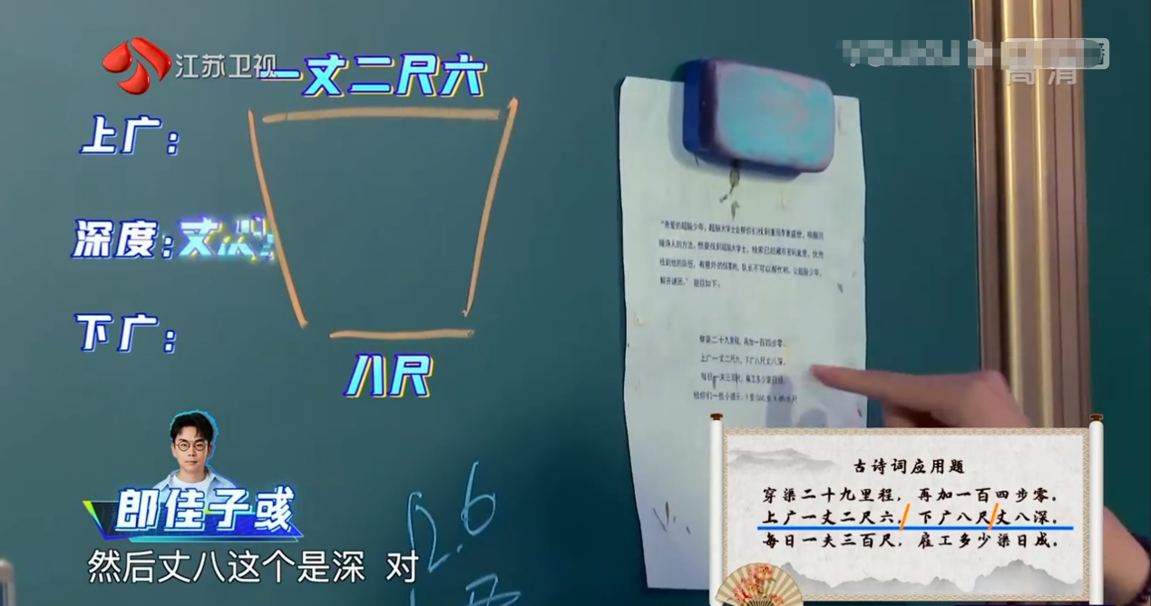 而少年们的计算过程也是一波三折,计算考验的是抽象和计算能力,而和其他队员的合作则考验的是协作力和担当力,在得出多个错误答案之后,郎佳子彧才明白大家的断句错了,正常的渠一定是上宽下窄,这其实是在计算之外对生活常识的考验。