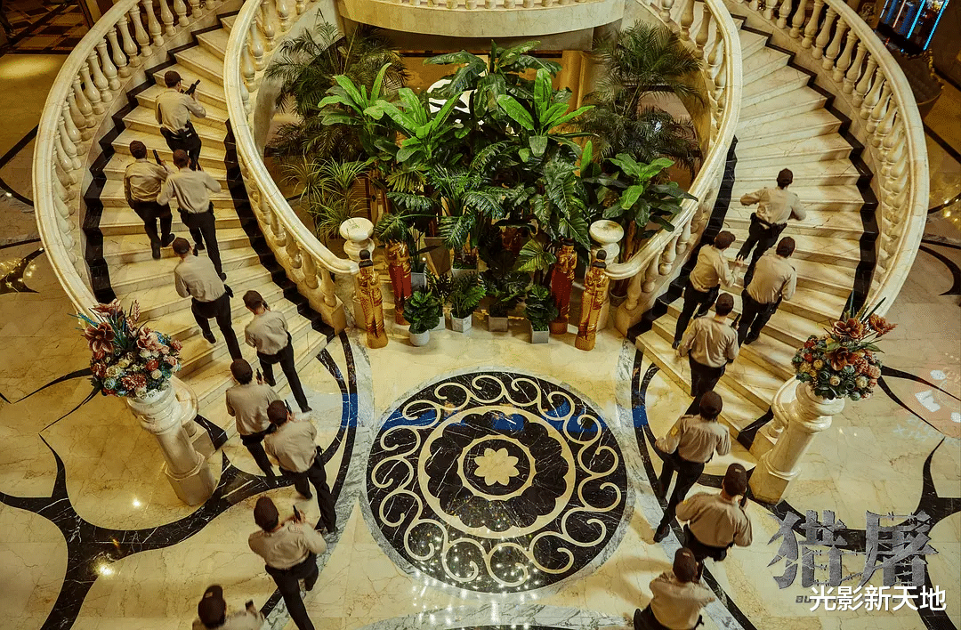 为了凸显真实感,《猎屠》远赴有异域风情的境外拍摄,全面、详细的展现了诈骗集团作案思路和流程——将大量年轻人骗到国外,胁迫或利诱他们编造各种人设,通过电信实施诈骗。电影节奏很快,剪辑干净利落,前半个小时就把这套流程讲完了。