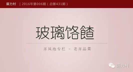 http://mmbiz.qpic.cn/mmbiz/YzcqHmHy6icO4KtE8WIA3mHtgKmnRYL3xemibIbpTDASZuAMBsN5cicZibq4U61kYuDUyUOiaFlSMibQLdfc0gemocyQ/0?wx_fmt=jpeg: 老齐品菜 - 《玻璃饹餷》" TITLE="【眉力村▪美食】齐凤池 : 老齐品菜 - 《玻璃饹餷》" />