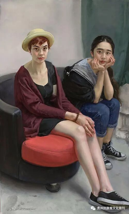 左下:《两个十九岁》 布面油画 150x90cm 2016