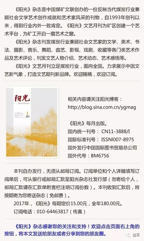http://mmbiz.qpic.cn/mmbiz_jpg/njuibhyrBKJ0ehHLDLFPpibowqR0oibibFk3affX4siaAjsFn4B35vFWksKJbCsGCbmmRfkOpFiahTVCEkibxY0MT2RYw/640?wx_fmt=jpeg&tp=webp&wxfrom=5&wx_lazy=1│ 目录 2017-03-27" TITLE="《阳光》2017年第3期 │ 目录 2017-03-27" />
