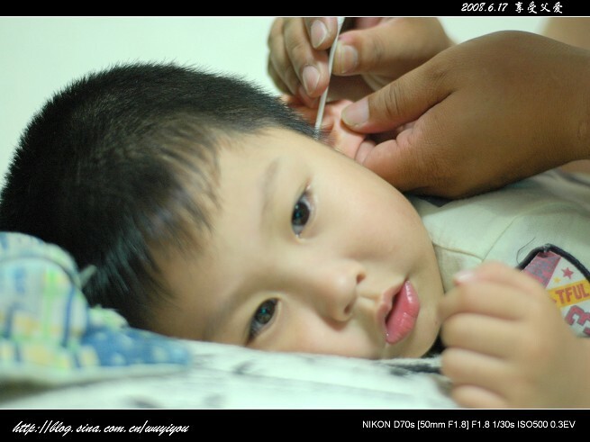 恩,也许大家会问妈妈平时不给掏的吗?嘿嘿,很不要意思的告诉大家俺不会,从小到大都不会,俺很怕把耳朵给掏聋了。所以咱们家的耳朵全都交给老吴同志啦,这让他很是愤愤不平呢。
