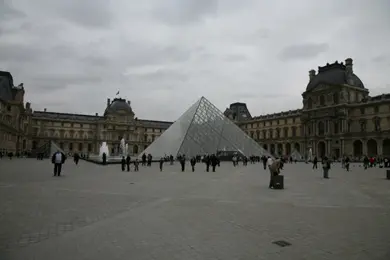 卢浮宫广场上20米高的玻璃金字塔,实际上是一个入口处,由美籍华人贝律铭设计,1989年3月30日投入使用,成为“大卢浮宫”第一阶段工程完成的标志。卢浮宫是欧洲最大的宫殿建筑群,三面环抱着一个长方形广场,在不损伤原有建筑的情况下,玻璃金字塔建在了广场中央,这一方案由密特朗总统亲自拟定。应该说,贝律铭的构思是独特的,用不锈钢支架托起透明的玻璃墙,可以从地下欣赏东、南、北三面的卢浮宫古典建筑。金字塔下面是离地面9米深的宽敞大厅,里面有休息室、商亭、餐厅等服务设施,并有三条通道直至三个展厅。这样一来,既解决了入口拥挤的问题,又使卢浮宫增加了5万平方米的面积。