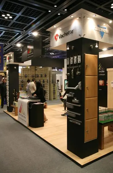 装配式货架。为适应现代展示的需要,已有多种装配式的展柜型材构件和配件被专门研制生产出来。一般常用的装配式货架,多用铝合金或不锈钢型材组装而成,其垂直与水平构件上有槽沟或孔眼,可插装玻璃、复合板、网板等,也有用弹簧钢卡夹装玻璃,尺度大小和格架数量可以根据需要而定。