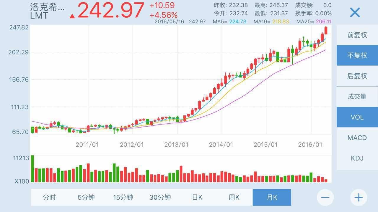 近期美股表现平平,但美国军工股却牛气冲天,几家大型军工企业的股价均创出了历史新高,请看以下几个军工股近几年走势图,让人吃惊!美国几大军工股近四年来涨幅近400%!