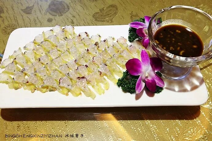 生吃鳇鱼筋,脆脆的,竟然有脆骨的感觉,口感特别好。