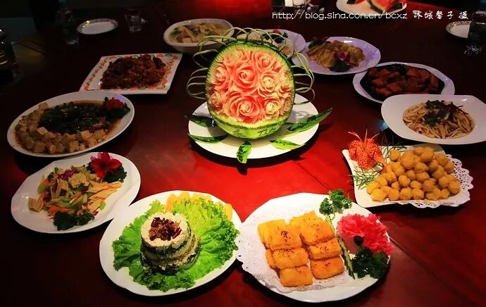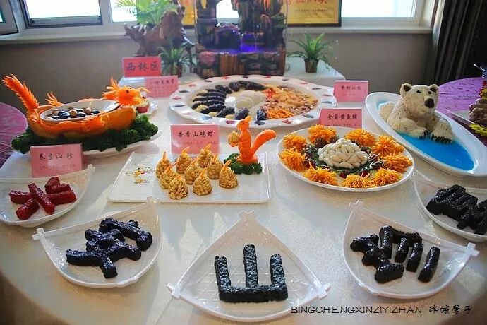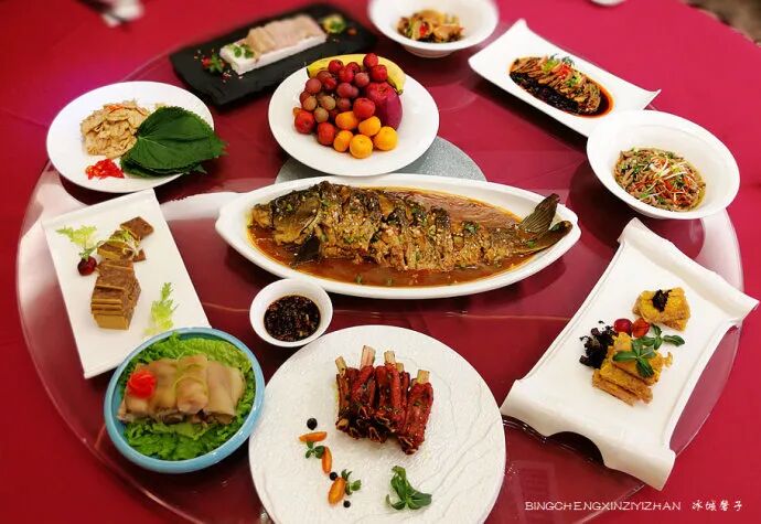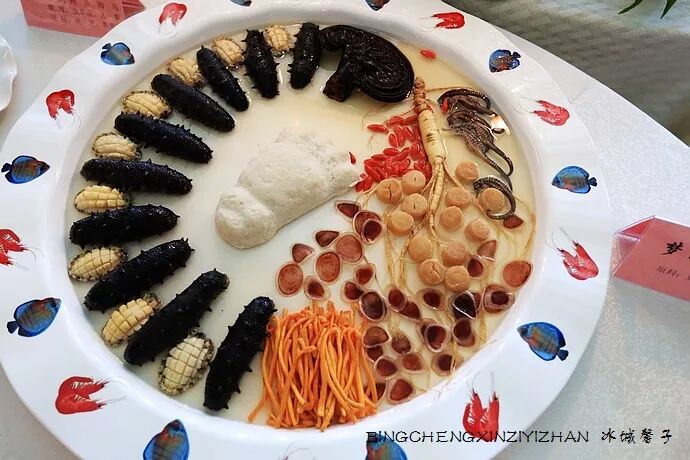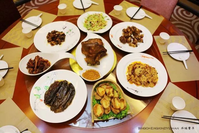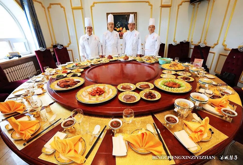 最近去哈尔滨金春大酒店见识了下满汉全席北派创新菜。它是宫廷御厨第四代传人张金春结合宫廷菜选料精、加工细、讲营养的特色,反复用宫廷菜烹调技术研制龙江地方传统名菜取得的成果。全席下来要有上百道菜,这只是其中的一部分。
