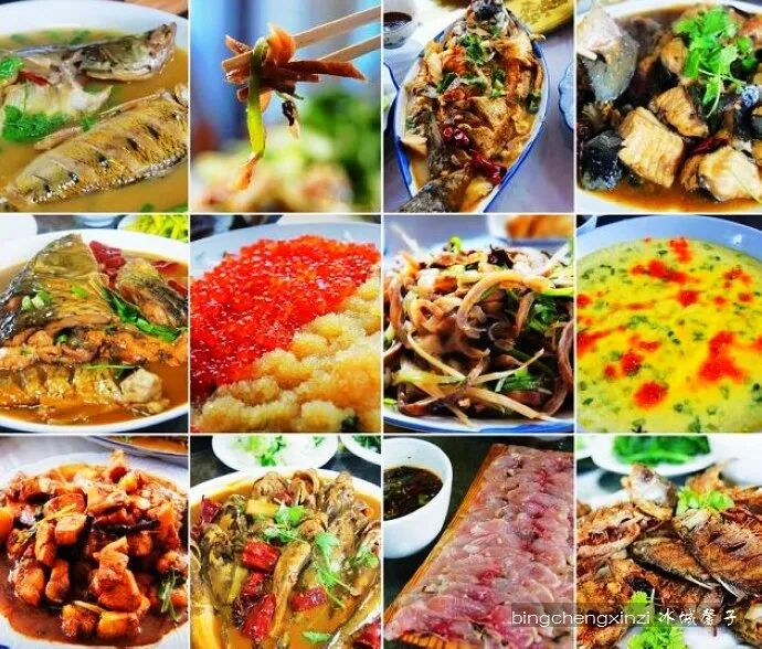 同江赫哲全鱼宴。黑龙江、松花江盛产鲤鱼、鲫鱼,著名的是淡水鱼“三花五罗”,即:鳌花、鳊花、鲫花,哲罗、法罗、雅罗、铜罗、胡罗。地处三江口的同江市,著名的赫哲全鱼宴有刹生鱼、刨花、塔拉哈、晒鱼干、晒鱼籽、炒鱼毛、烤鱼干、炸鱼块等,做工讲究,味道鲜美。